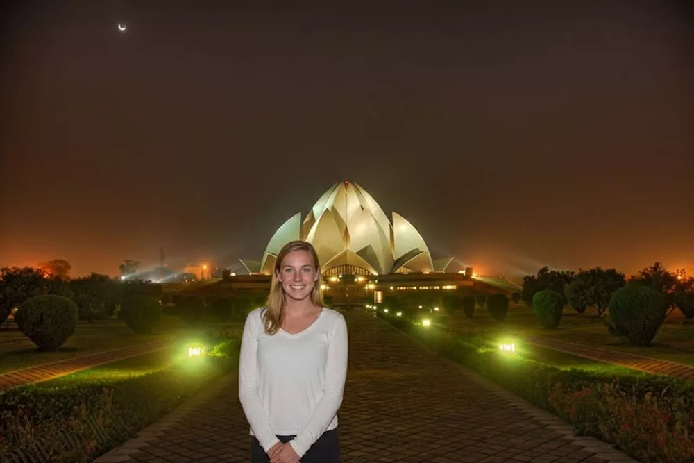 The Lotus Temple opens for a limited window in the evening, letting visitors experience its flower‑like structure under soft lighting. The surrounding gardens and pathways feel peaceful, drawing people who want quiet reflection rather than loud nightlife.